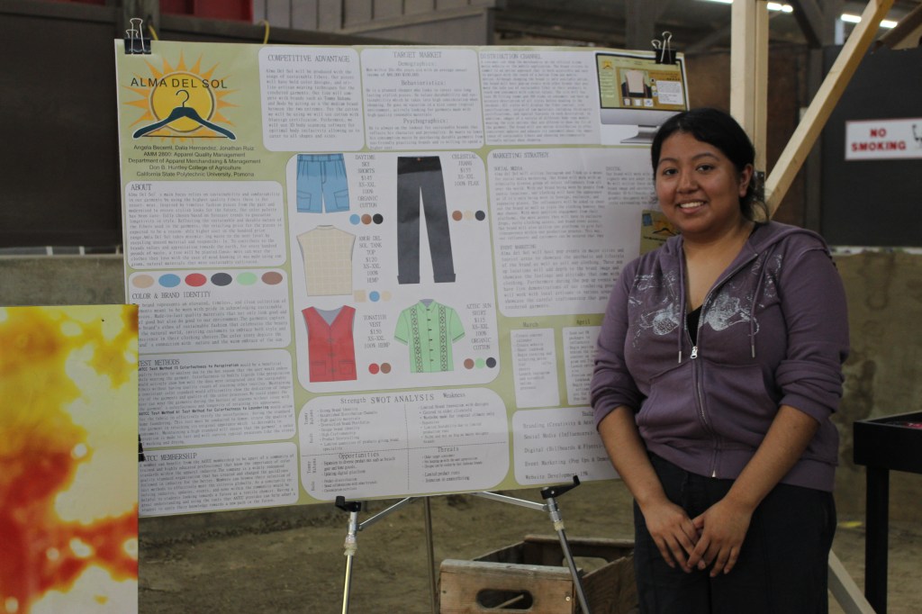 Apparel students also volunteered to engage with youth during K-12 field trips at the Fair. They did hands-on weaving demonstrations, hand-spinning demonstrations, and shared Cal Poly Pomona washed wool samples. They also presented their creative-research experiences based on the annual AATCC concept to consumer competition focused on proposing a sustainable, water-consciousness clothing line. I was very proud to witness their high level of engagement with youth and community members!